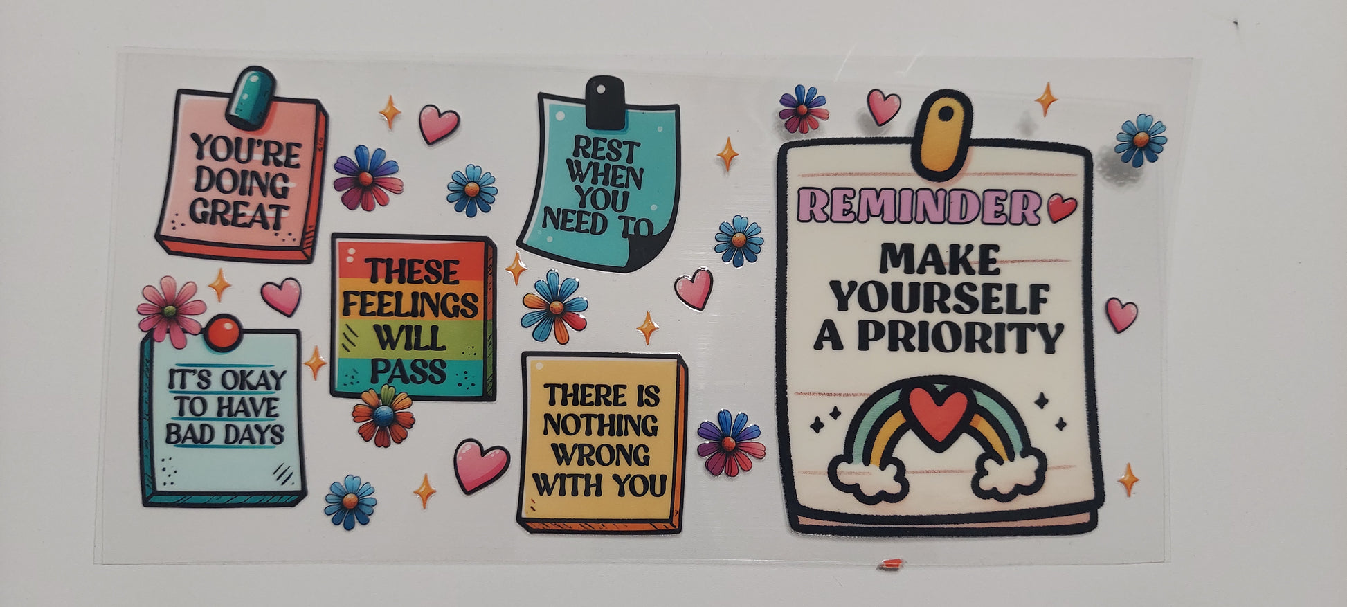 To preserve the UV DTF design, wash gently by hand with mild soap and water. Avoid harsh scrubbing. UV DTF films are durable but may degrade with prolonged exposure to high temperatures. Avoid dishwashers and microwaves. Prolonged soaking can weaken the adhesion, especially on rounded surfaces. Harsh chemicals, solvents, or alcohol-based cleaners may damage the film or cause it to peel.