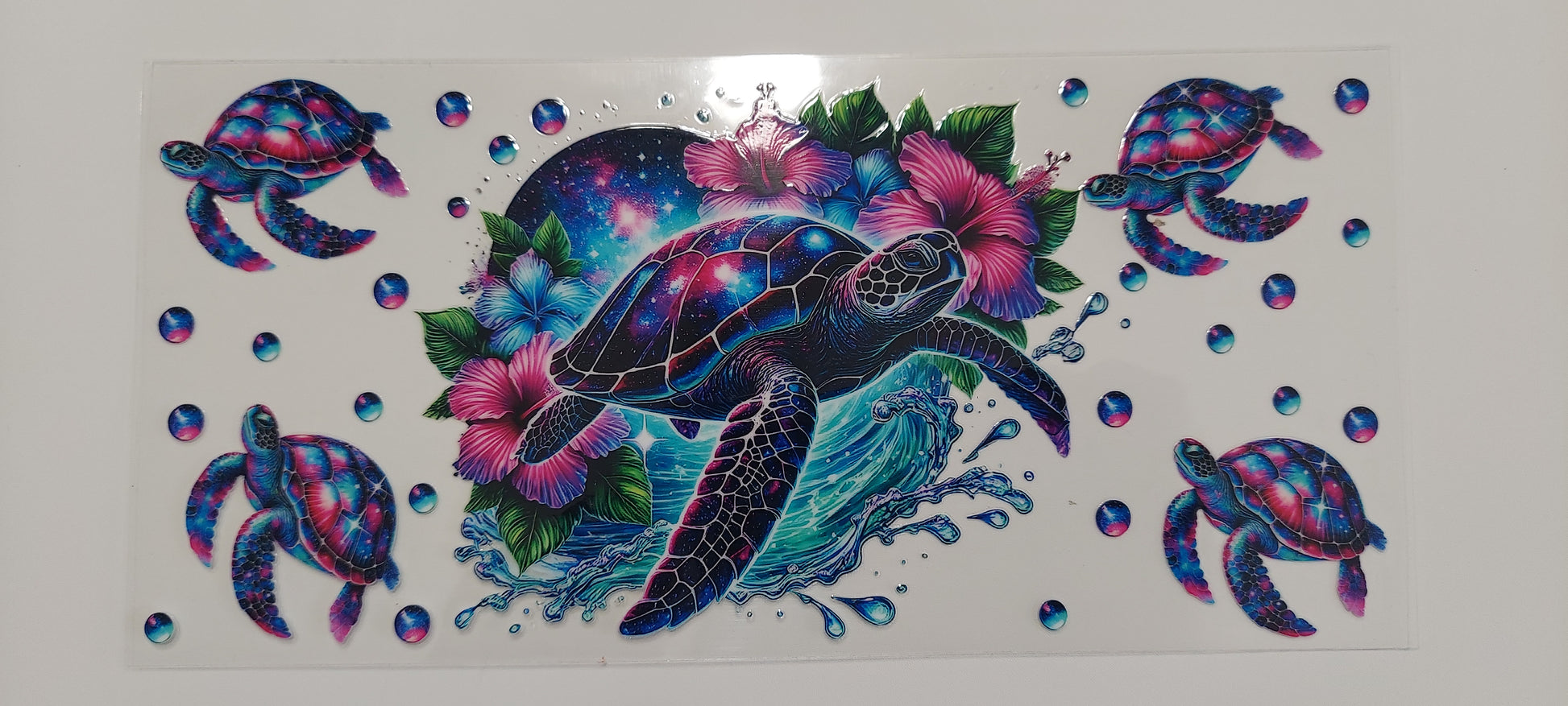 - CAREFULLY PEEL OFF THE PROTECTIVE BACKING FROM THE UV DTF WRAP TO REVEAL THE ADHESIVE SIDE.
