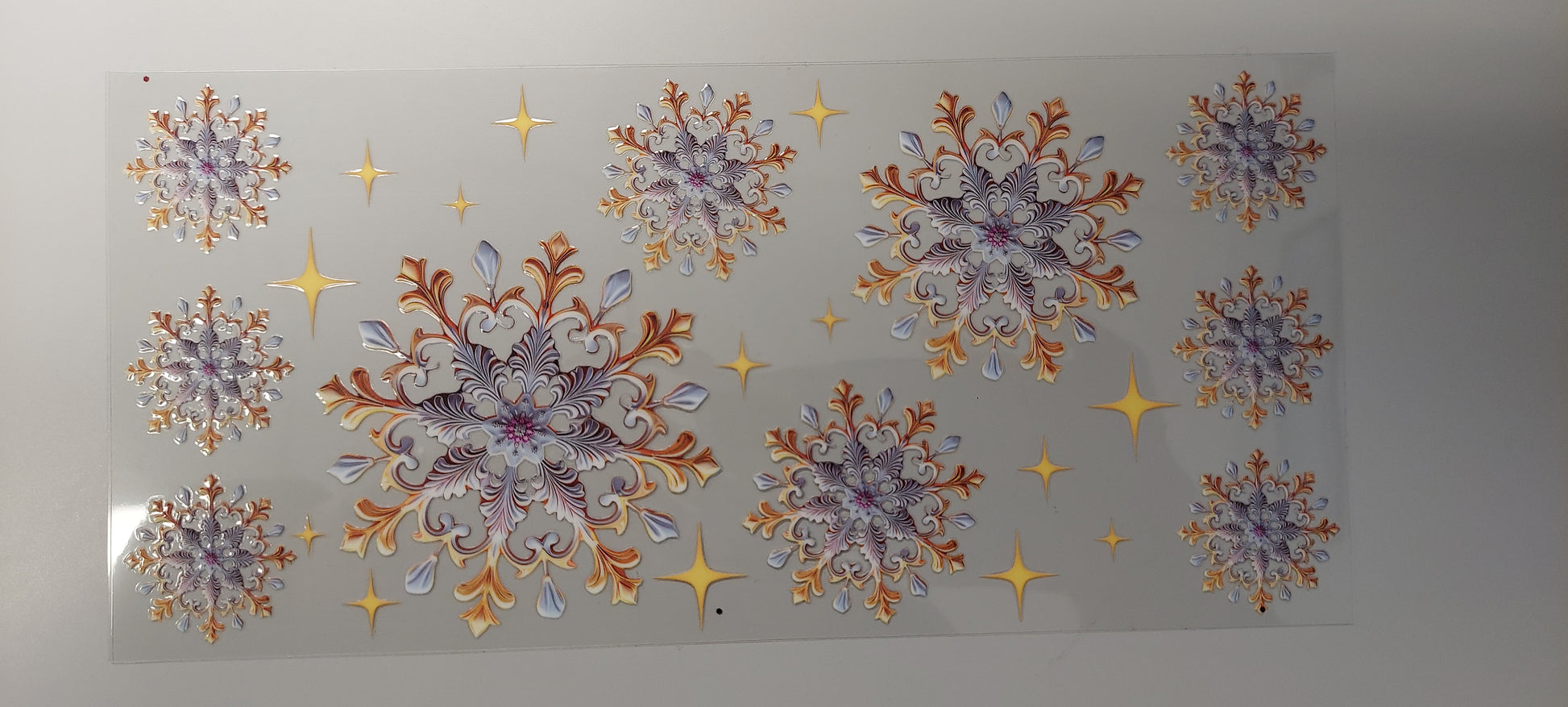 - CAREFULLY PEEL OFF THE PROTECTIVE BACKING FROM THE UV DTF WRAP TO REVEAL THE ADHESIVE SIDE.