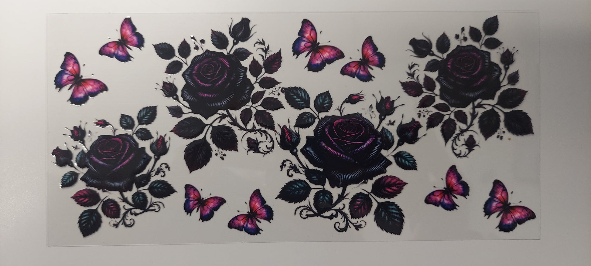 - CAREFULLY PEEL OFF THE PROTECTIVE BACKING FROM THE UV DTF WRAP TO REVEAL THE ADHESIVE SIDE.